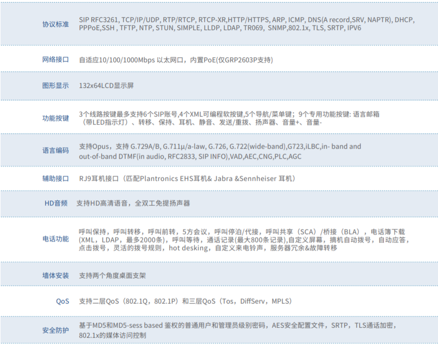 10/100/1000 Mbps自适应网口,Poe供电(GRP2603P支持)