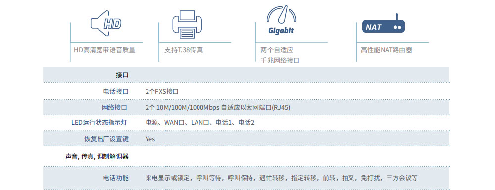 1 WAN & 1 LAN 1000 BASE-T,支持T38